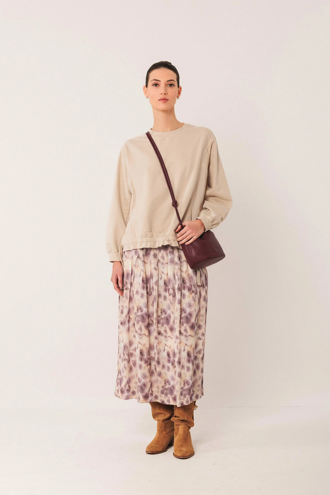 WATERCOLOR MIDI SKIRT AUBERGINE