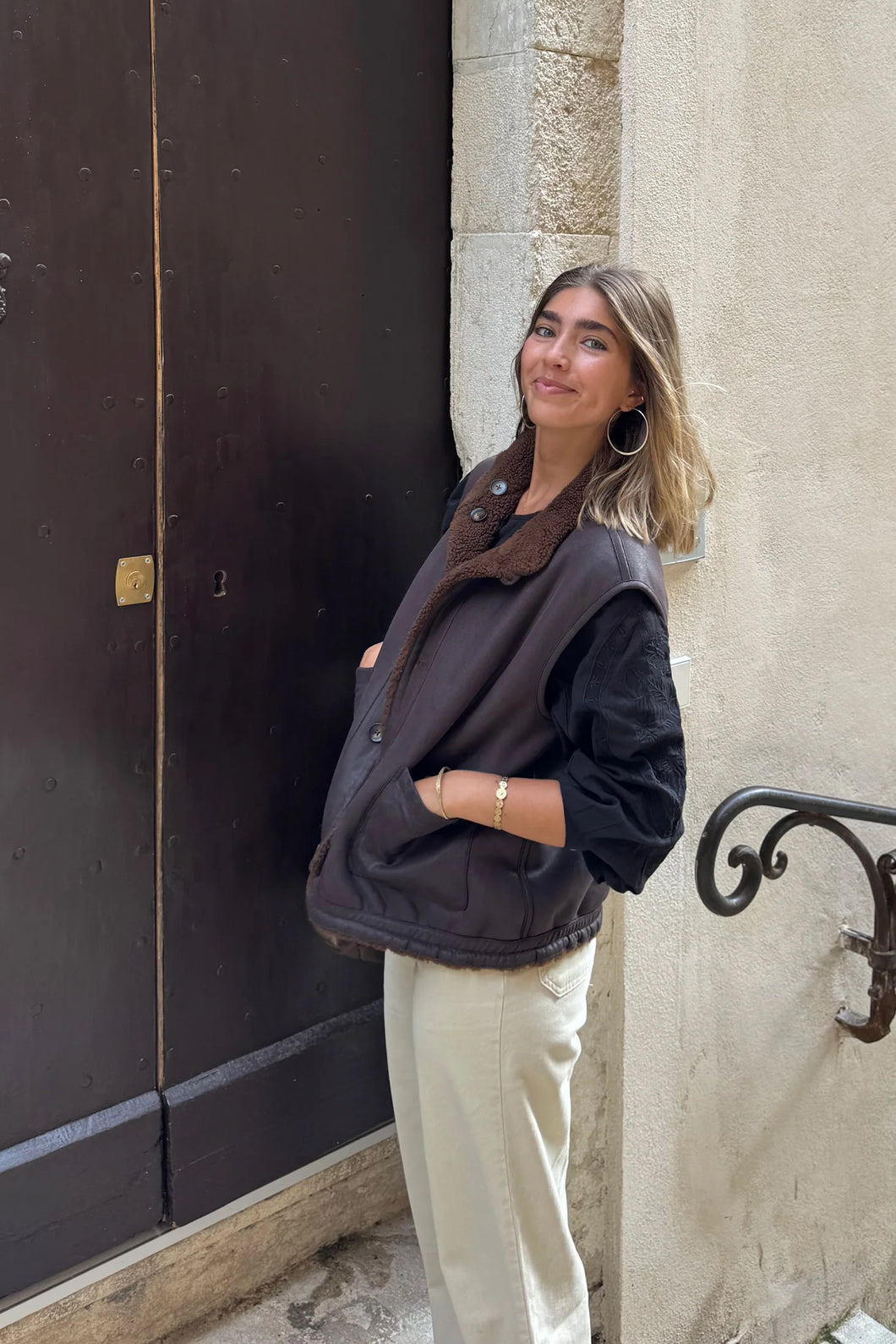 This reversible vest will help you play with your look. On one side, you'll find polished nubuck-style fabric; on the other, you have the teddy effect, even more comfy. It has an elastic waist, and you'll love its fit.